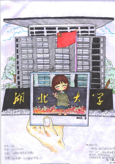 來自湖北大學藝術學院的王晶是名大二學生。她用一幅幅漫畫向大家介紹了自己的校園。王晶稱,她用漫畫記錄生活,每到寒暑假都會把這些漫畫日記整理出來。這次,她花了三天的時間完成這組大學回憶錄的作品。