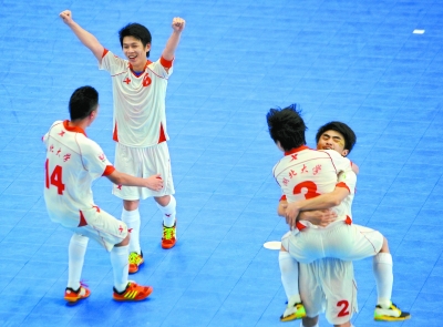今天,2012—2013賽季特步中國大學生五人制足球聯賽(簡稱大五聯賽)南大區比賽在湖南師范大學體育館結束。湖北大學隊在決賽中以3比2戰勝北京體育大學隊,獲得南大區冠軍。足球拉拉隊南大區選拔賽也完美收官,湖南師范大學隊以飽滿的激情、扎實的功底、高規格的動作贏得冠軍。